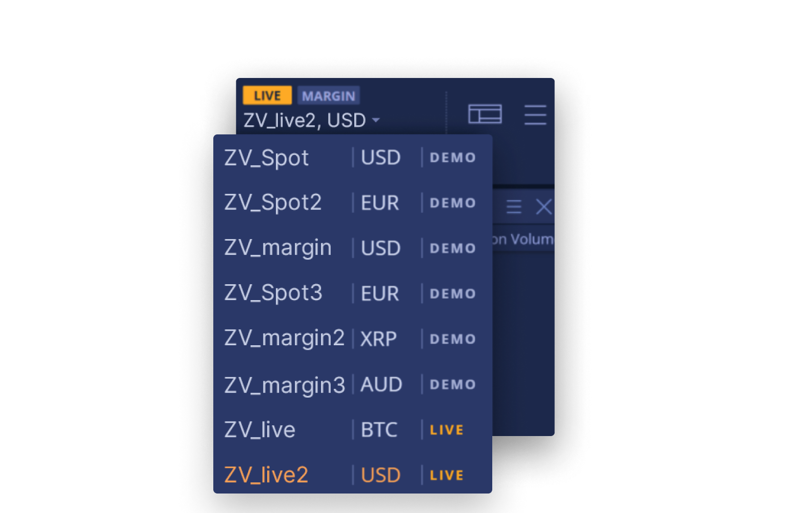 You can offer multiple margin and spot trading under a single login. This makes it easy for your clients to switch between spot and margin accounts.