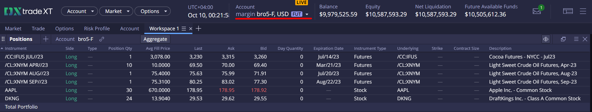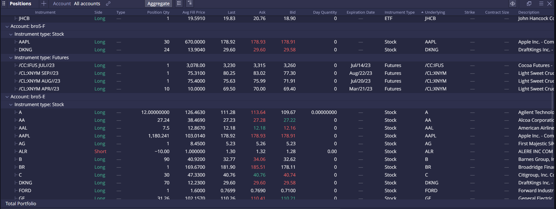 Positions: All Accounts + Aggregate