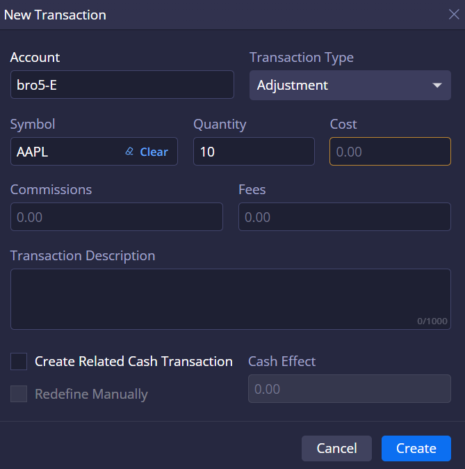 Transactions: Adding transactions directly from UI
