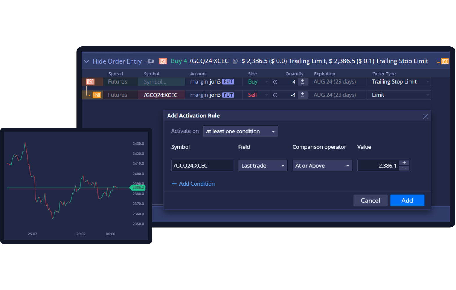 Empower our clients to manage risk with flexible trading strategies and a variety of order types, such as stop market, stop limit, and trailing stop. Position sizing adjusts the number of contracts traded based on market volatility and each client’s risk tolerance.