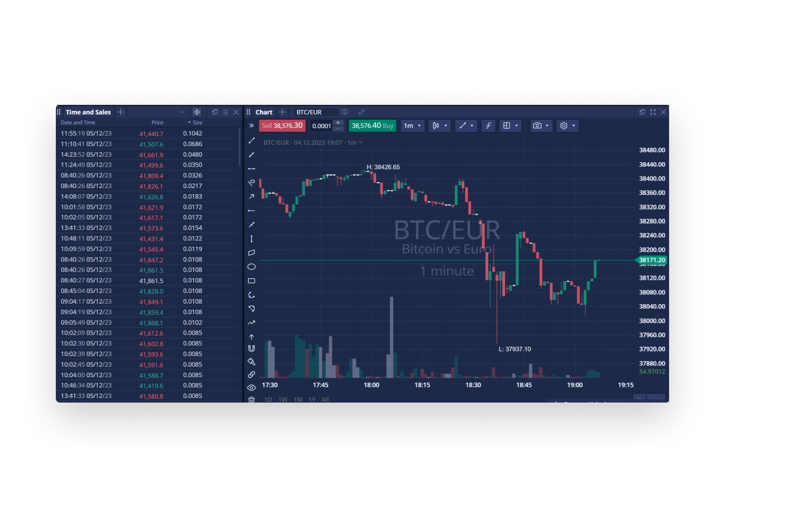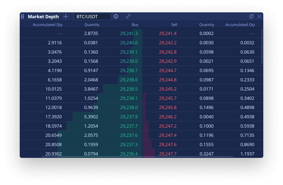 The Market Depth widget shows the best bid/ask prices and specific lots available on the market. It helps your clients see in real time how liquid the market is for a given instrument.