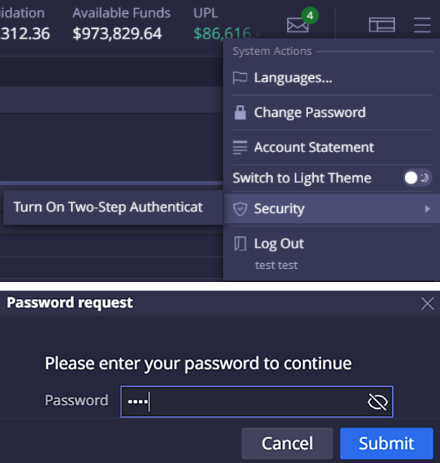 DXtrade XT now supports two-factor authentication in Web Trader to add an extra layer of security. Starting from this release, if enabled in the platform, users are offered to turn on 2FA from the main menu after they log in. Following that, they are invited to download a third-party authenticator app and scan the system-generated QR code.