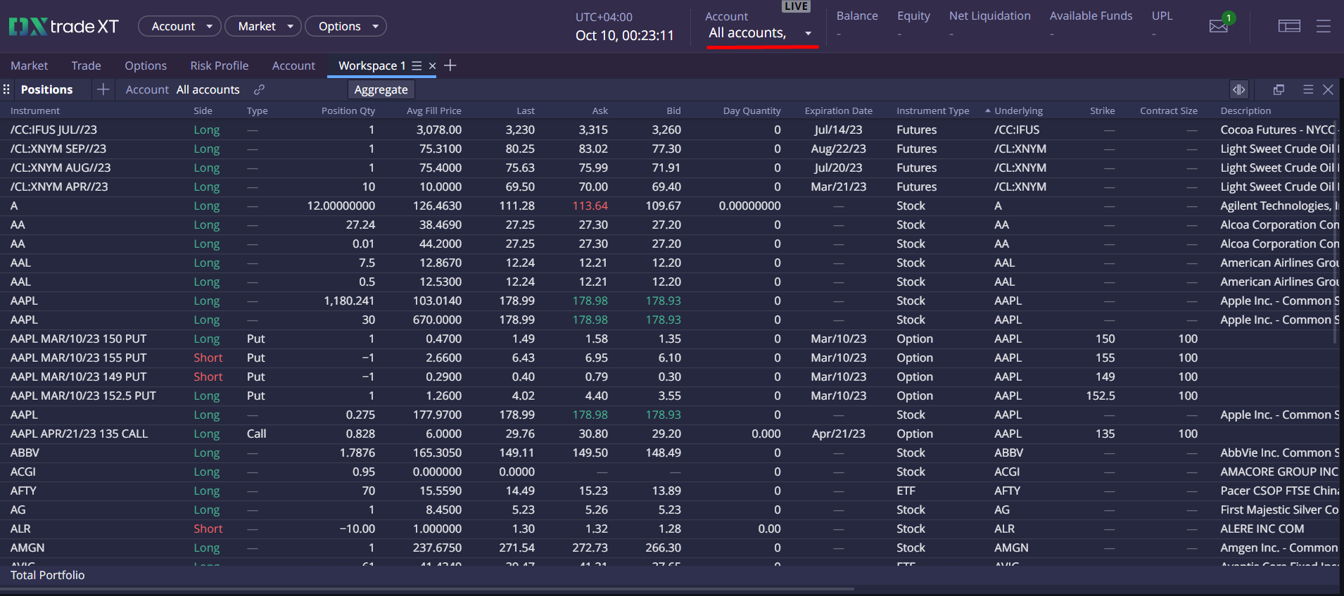 Positions: All Accounts + Aggregate